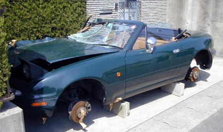 それどころか数ヶ月の間、この車をこの場所に放置したわけだから「事故で死んでしまった息子が忘れられなくて、せめて車だけでも捨てずに置いているんだわ。かわいそうに」と周囲に住むマダムたちの勝手な妄想をふくらませてしまったに違いない。近所の人には迷惑をかけたが、テンハチのブレーキとトルセンデフが欲しくて落札した。手元にはそれ以外にも左フェンダーとかドア、バンパーなどなど、さまざまな部品が残ったから、輸送代として取られた2万円を足して12万円の価値はあったと思う。なによりも、解体の過程を通じて車いじりについてかなりの知識を得ることができた。