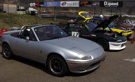 15インチ化の耐久仕様ロードスターでどれだけのタイムが出るかが問われた今回。AD08のニューネオバがどれだけ働いてくれるかという期待を胸にコースイン。