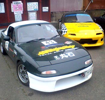 そのままRS Factory STAGEへ。月曜日の日常を読んだT氏が「へー、いいよね」と意味不明な電話を掛けてきたので襲撃してみる(笑)。足回り交換の作業を見学しながら、あーでもない、こーでもないとお話。スタースペックの裏組みは「ありえねーでしょ」と言われてしまった。確かに、ショルダーが減る傾向が強いタイヤなので、裏組みすると、接地面積が減る感じになっちゃうよね。第2戦に向けてタイヤ選択に悩みそう。